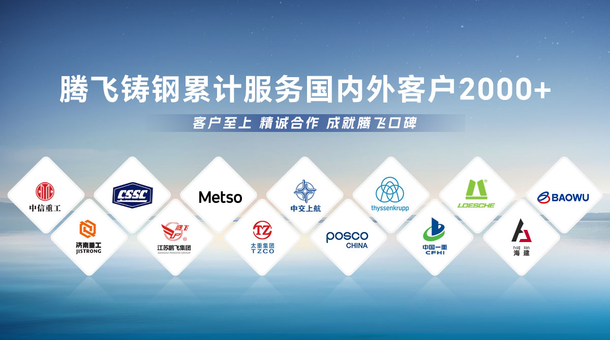 騰飛鑄鋼成立于2006年,位于全國鑄造基地河南省新鄉市,擁有員工300余人,是一家從事150噸以下碳鋼、低合金鋼、不銹鋼鑄鋼件研發、制造、服務為一體的國家高新技術企業。  公司通過了ISO9001國際質量管理體系認證,擁有2項發明專 利,2項河南省科技成果、25項實用新型技術,通過了“環??冃гu級B級企業”驗收,先后榮獲“河南省鑄造行業綠色發展企業”、 “河南省科技型中小企業”、“河南省專精特新中小企業”等榮譽稱號?! 」緭碛?臺25噸電爐,4臺大型天燃氣熱處理爐、10米回旋自動拋丸機一臺, φ8m數控立車、φ10m數控滾齒機等各類高精裝備100余臺套,年產能3萬余噸,能為客戶提供從產品設計、木模加工、大型鑄造、大型加工一站式服務,產品廣泛應用于建材、冶金、鍛壓、冶金、水工、路橋、化工等多個重型行業。  長期服務于中信重工、中船重工、美卓、上海中交、萊歇、寶武、濟南重工等全球知名企業,在行業內擁有較高的市場知名度和美譽度。